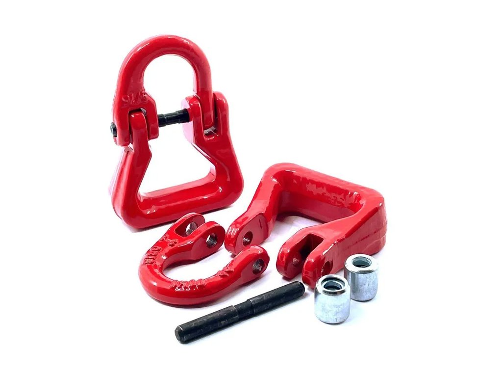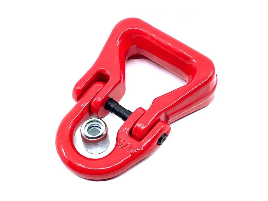 Spojovací článok na textilné pásy pevnostnej triedy 80 je vyrobený z vysoko kvalitnej ocele a jeho povrchovou úpravou je komaxit v červenej a čiernej farbe. Používa sa na spojenie textilného pásu alebo nekonečnej slučky s hákom a hlavou závesu.