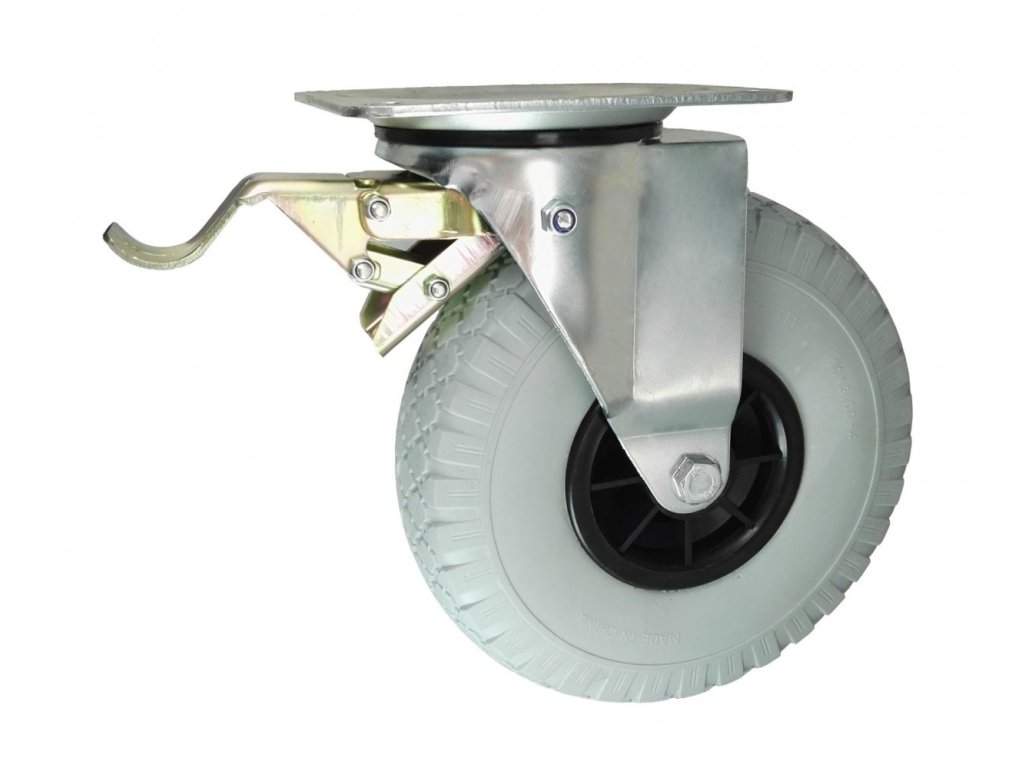 Elastické koleso šedé 260/75 mm, otočná vidlica s doskou+brzda