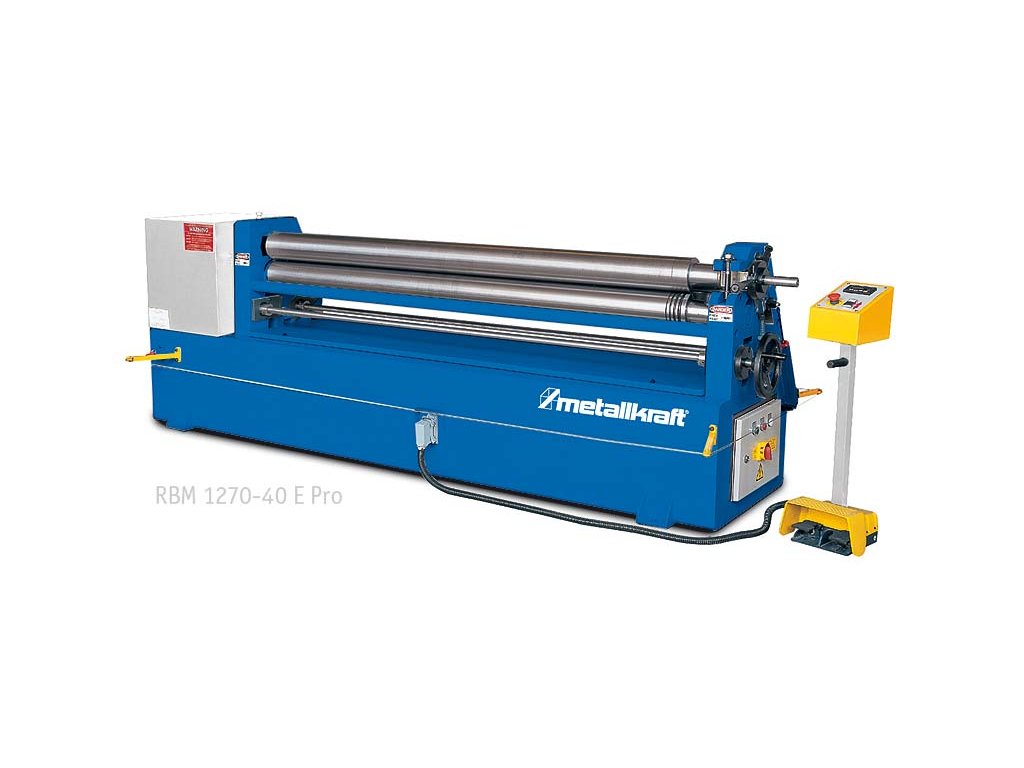 Elektrická zakružovačka RBM PRO v masívnom prevedení s nožným ovládaním na zakružovanie plechu hrúbky až 4 mm.