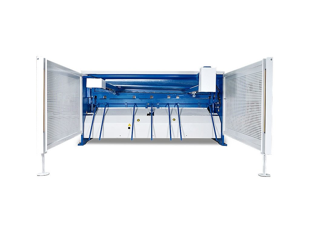 Robustné elektrické nožnice na plech so zváranou konštrukciou a programovateľným zadným dorazom. Pracovná šírka 3130 mm.