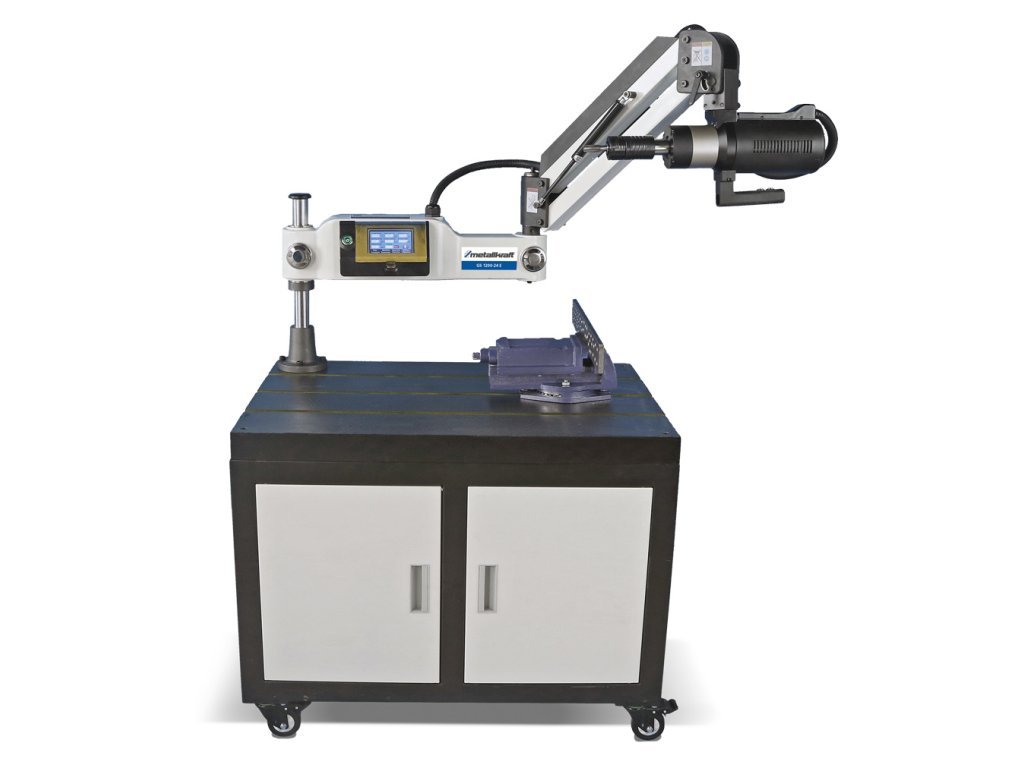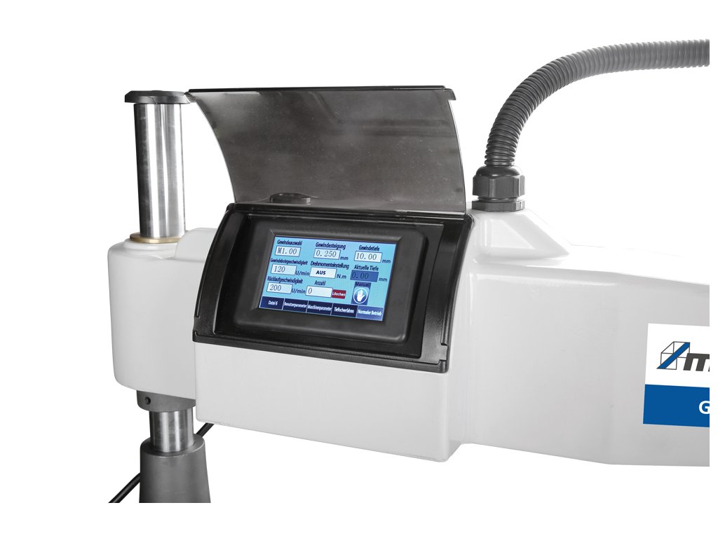 Závitorez s voľne pohyblivým ramenom a nastavením parametrov pomocou vstavaného displeja. Navyše s funkciou primazávania a ofukovania.