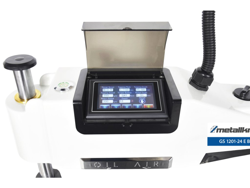- Nastavenie veľkosti závitu, otáčok, stúpania a hĺbky rezu pomocou dotykovej obrazovky na otočnom ramene