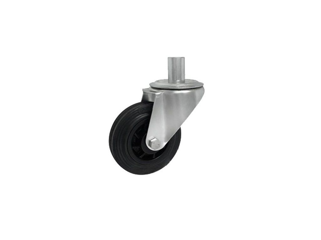 Gumové koleso 100/20 mm, čierna/plast, otočná vidlica s čapom ø24 je určené pre ľahké manipulačné zariadenia, kde je potrebná jednoduchá montáž a vysoká manévrovateľnosť. Otočná vidlica umožňuje plynulé otáčanie o 360°, vďaka čomu je manipulácia pohodlná aj v stiesnených priestoroch.