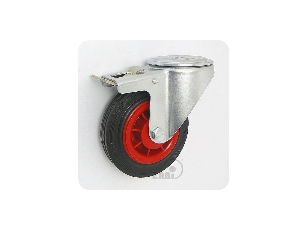 Gumové koleso 100/20 mm, čierna/plast, otočná vidlica s otvorom+brzda