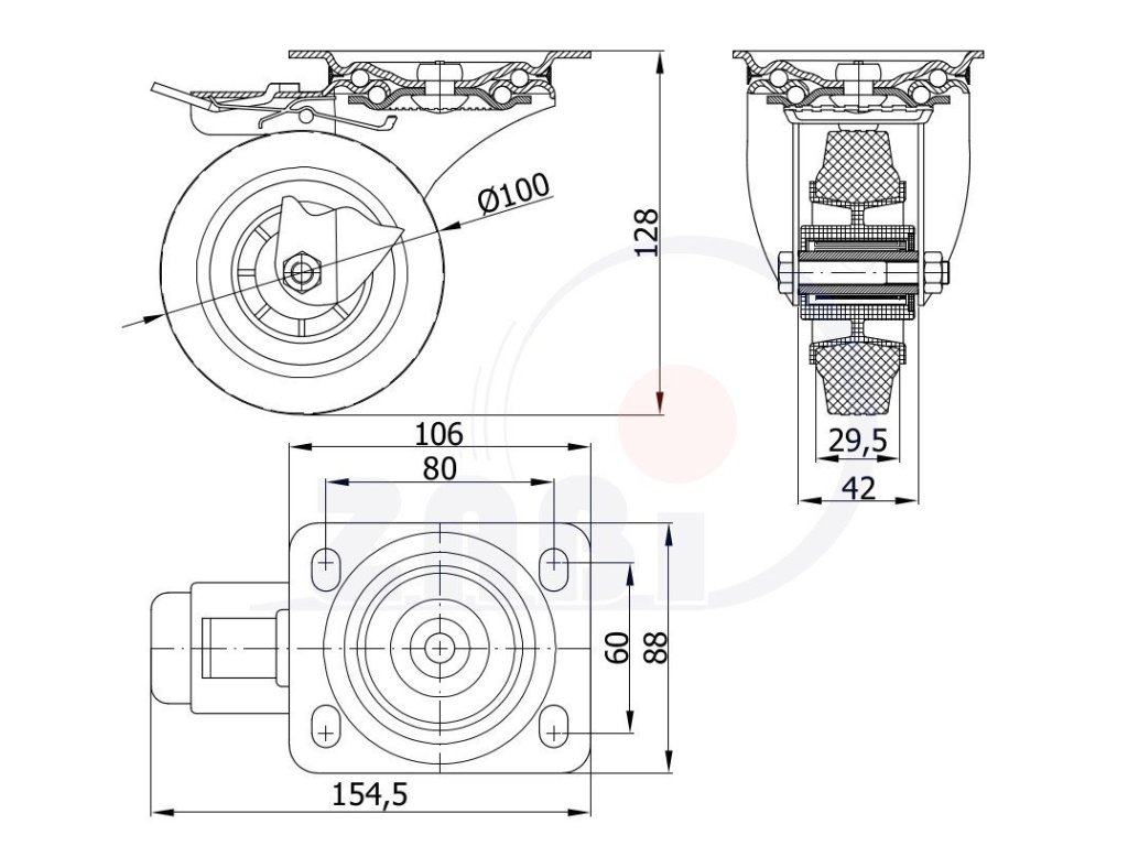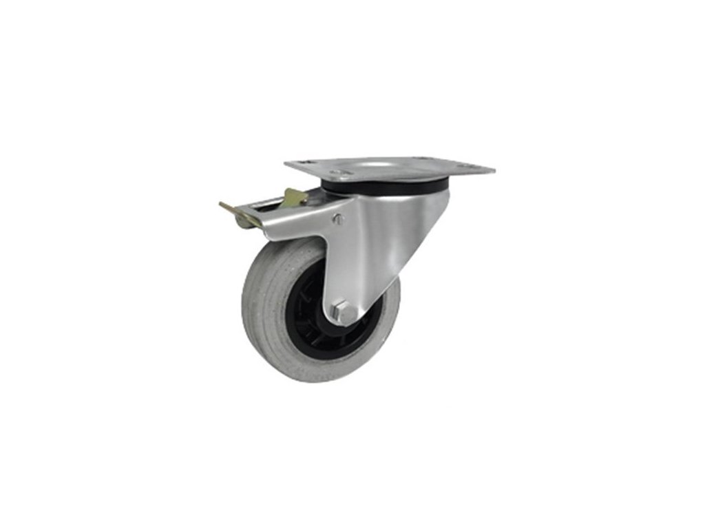 Gumové koleso 100/20 mm, šedá/plast, otočná vidlica s doskou+brzda