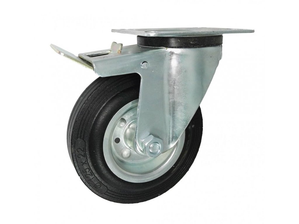 Gumové koleso 125/21 mm, čierna/oceľ, otočná vidlica s doskou+brzda