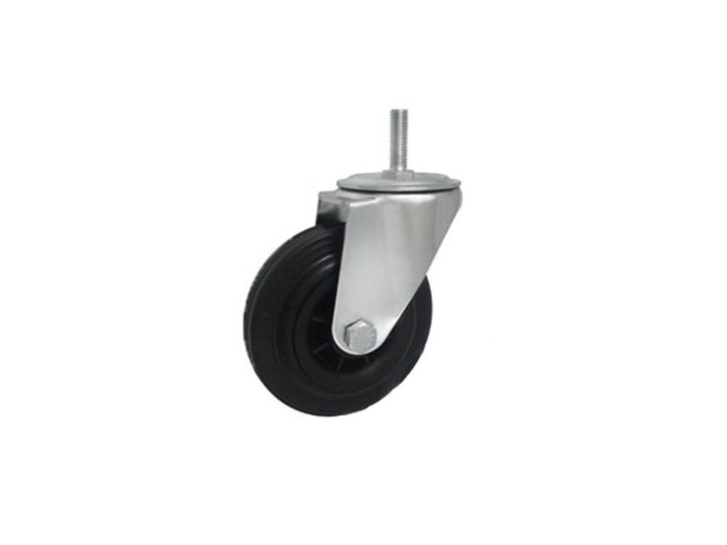 Gumové koleso 125/22 mm, čierna/plast, otočná vidlica s čapom M12 je určené pre ľahké manipulačné zariadenia, kde je potrebná jednoduchá montáž a dobrá manévrovateľnosť. Otočná vidlica umožňuje plynulé otáčanie o 360°, vďaka čomu je manipulácia pohodlná aj v stiesnených priestoroch.