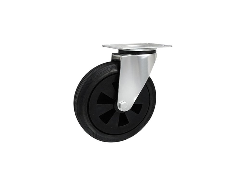 Gumové koleso 200/36 mm, čierna/plast, otočná vidlica s doskou