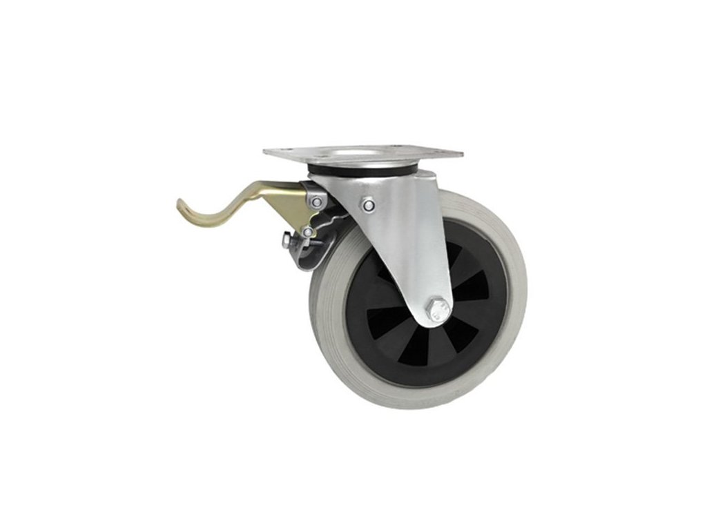 Gumové koleso 200/36 mm, šedá/plast, otočná vidlica s doskou+brzda