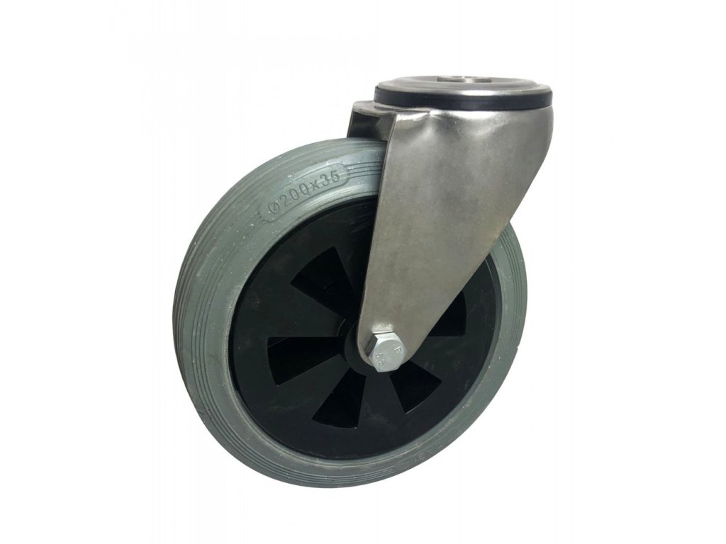 Gumové koleso 200/36 mm, šedá/plast, otočná vidlica s otvorom a ložiskom