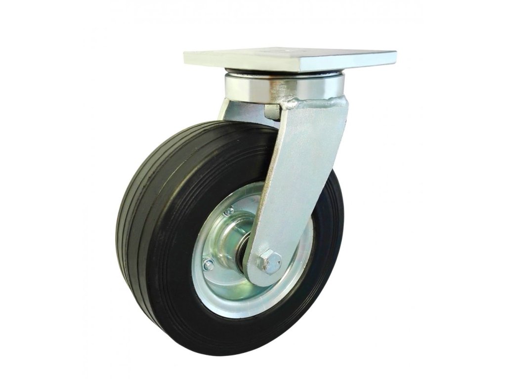 Gumové koleso 200/72 mm, čierna/oceľ, otočná vidlica s doskou