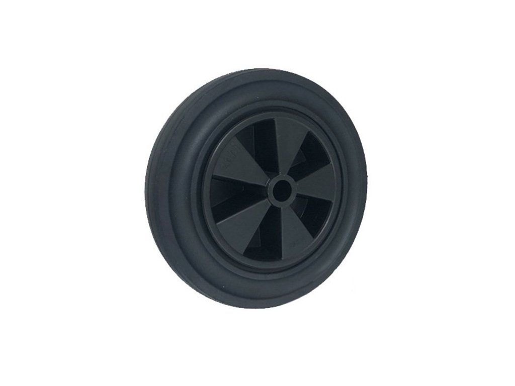 Pogumovaný behúň zabezpečuje tichý chod, dobré tlmenie nárazov a šetrný kontakt s podkladom. Plastové jadro znižuje hmotnosť kolesa a zároveň poskytuje dostatočnú pevnosť a odolnosť voči bežnému opotrebovaniu. Koleso je vhodné ako samostatný náhradný diel pre jednoduchú výmenu.