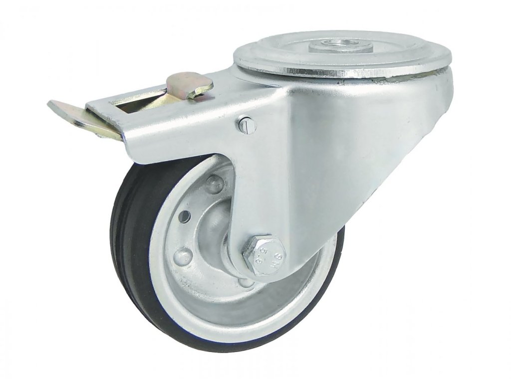 Gumové koleso 80/26 mm, čierna/oceľ, otočná vidlica s otvorom+brzda