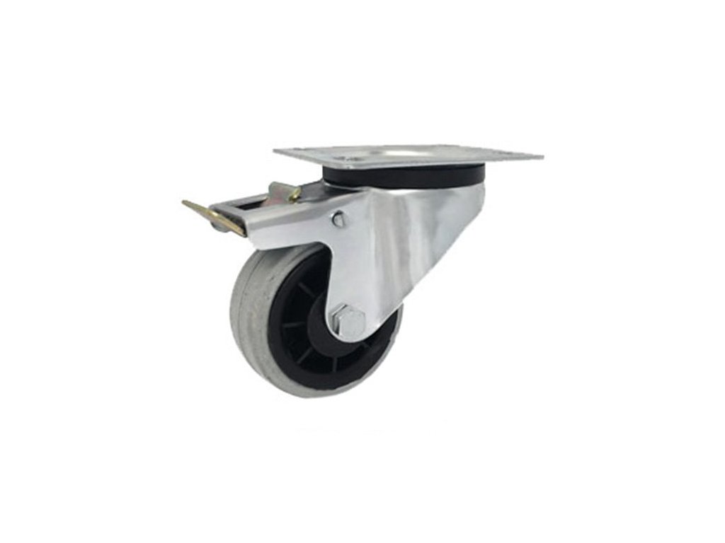 Gumové koleso 80/26 mm, šedá/plast, otočná vidlica s doskou+brzda