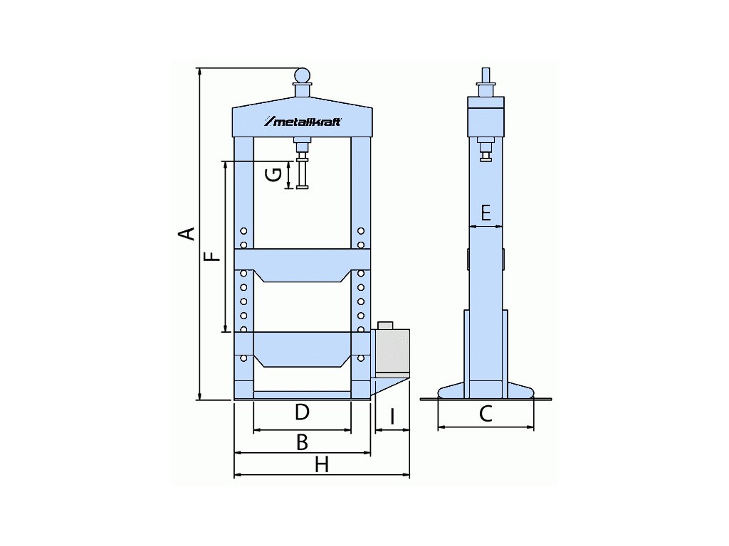 - Robustný rám s perforáciou pre výškové nastavenie lisovacieho stola