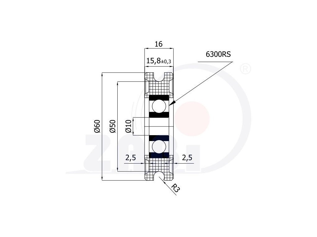 | Rozmer drážky (šírka): | R=3 mm (6 mm) |