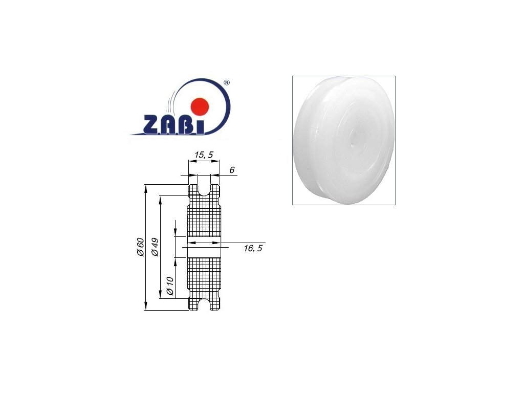 Kladka plastová 60/15.5/10 mm, PA6, profilovaná R3