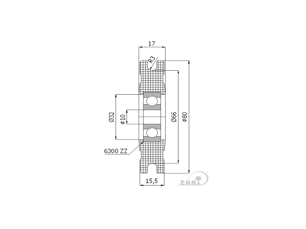 Kladka plastová 80/15.5/10 mm, PA6, profilovaná R3
