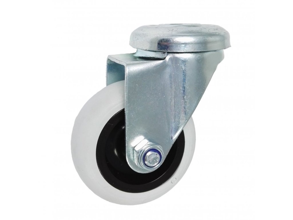 Nábytkové koleso 75/23 mm, PA6/guma, otočná vidlica s otvorom