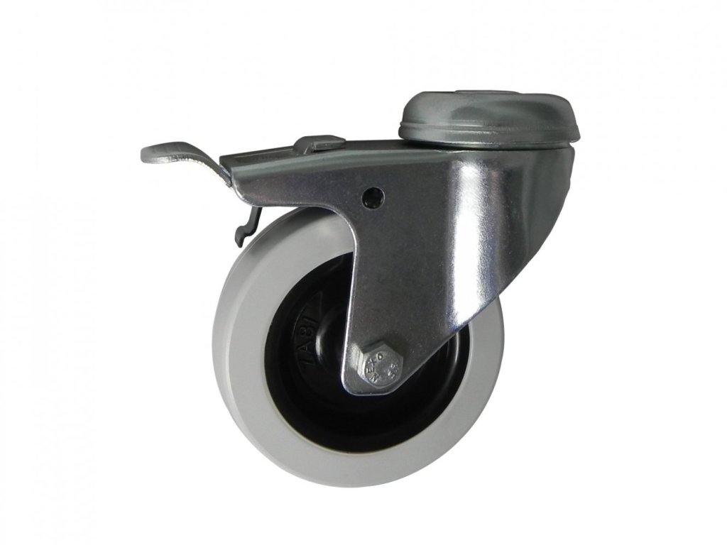 Nábytkové koleso 75/23 mm, PA6/guma, otočná vidlica s otvorom+brzda