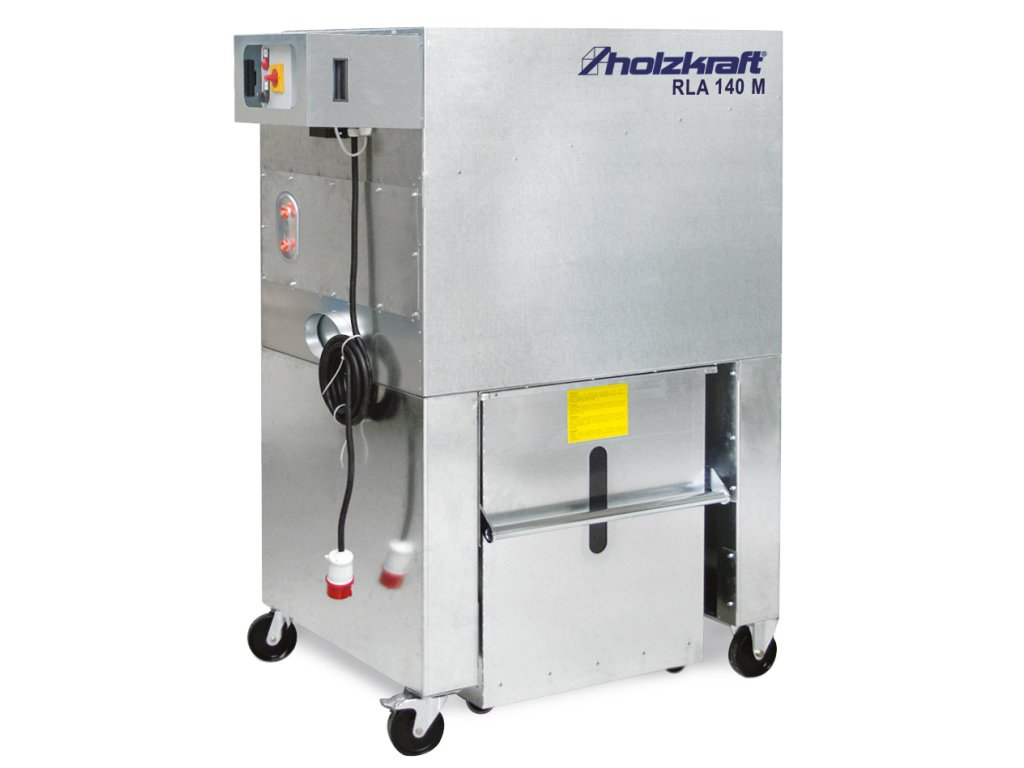 RLA 140 M je ideálny pre priemyselné odsávanie drevných triesok a pilín, vďaka svojej kvalitnej a dobre premyslenej konštrukcii. Je robustný a kompaktný s krytom z pozinkovaného plechu. Odsávací nátrubok je možné ľahko prerobiť zľava doprava. Taktiež má veľké kontrolné otvory a veľkú, pojazdnú nádobu na triesky s madlom a vrecom.