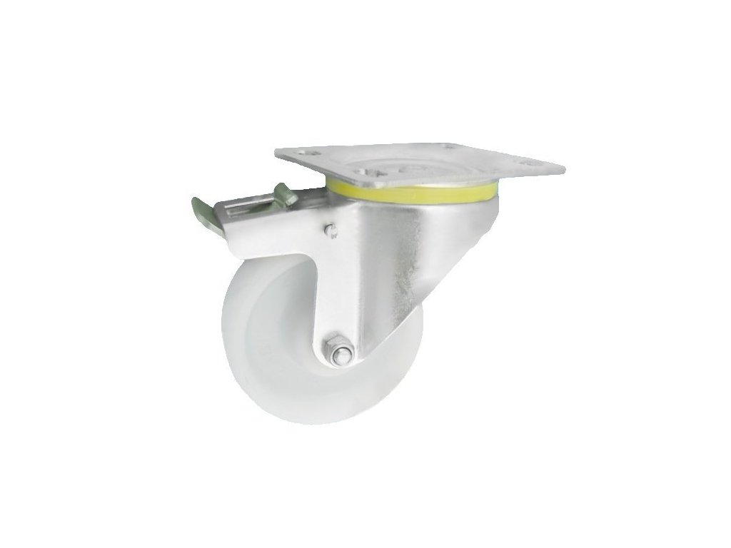 Plastové koleso 100/30 mm, PA6, otočná vidlica s doskou+brzda