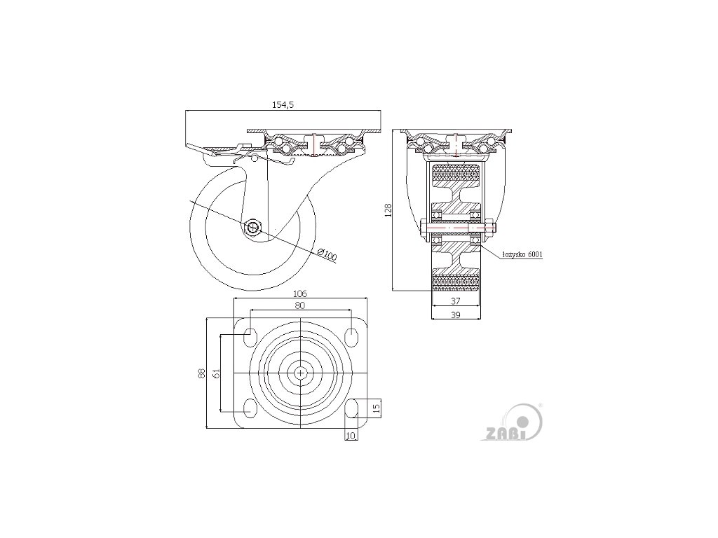 - polyuretánové koleso s hliníkovým diskom, otočná vidlica s upínacou doskou a brzdou
