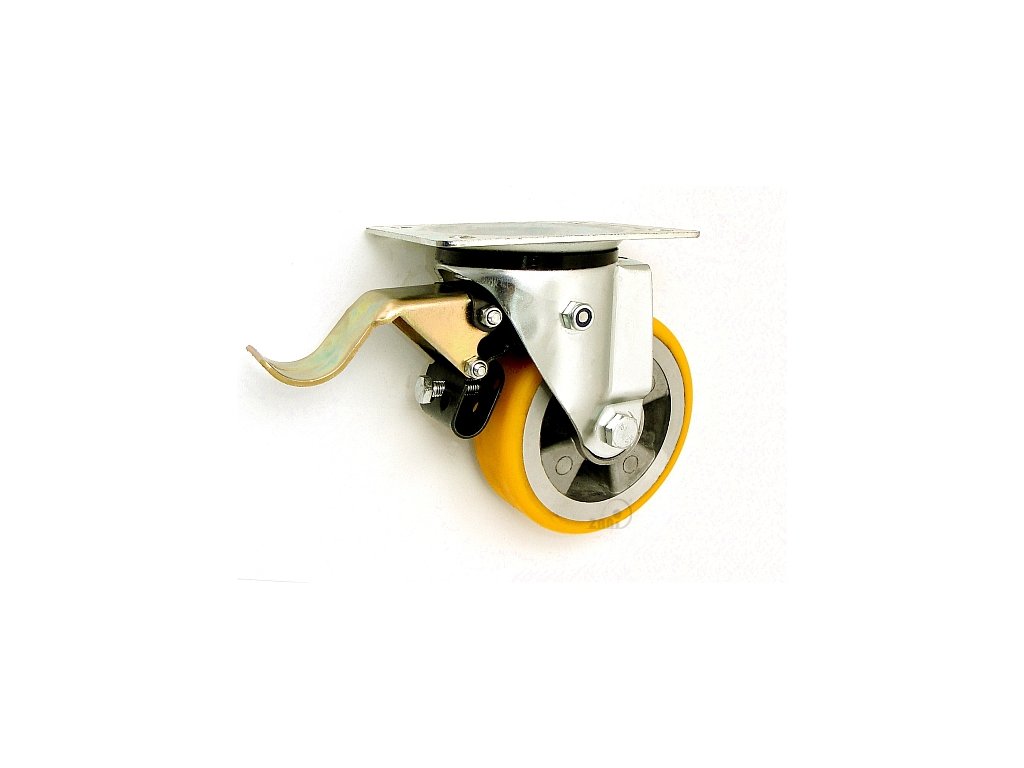 Polyuretánové koleso 125/42 mm, hliník, otočná vidlica s doskou+brzda