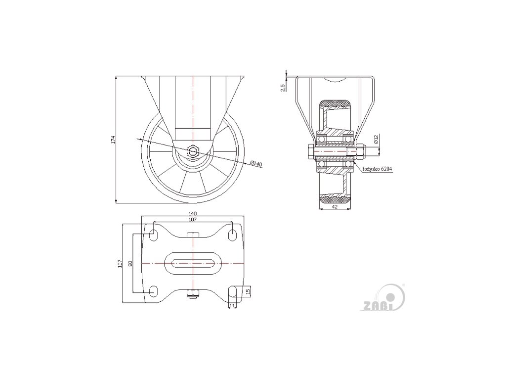 - polyuretánové koleso s hliníkovým diskom, pevná vidlica s upínacou doskou