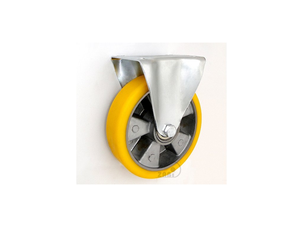 - polyuretánové koleso s hliníkovým diskom, pevná vidlica s upínacou doskou