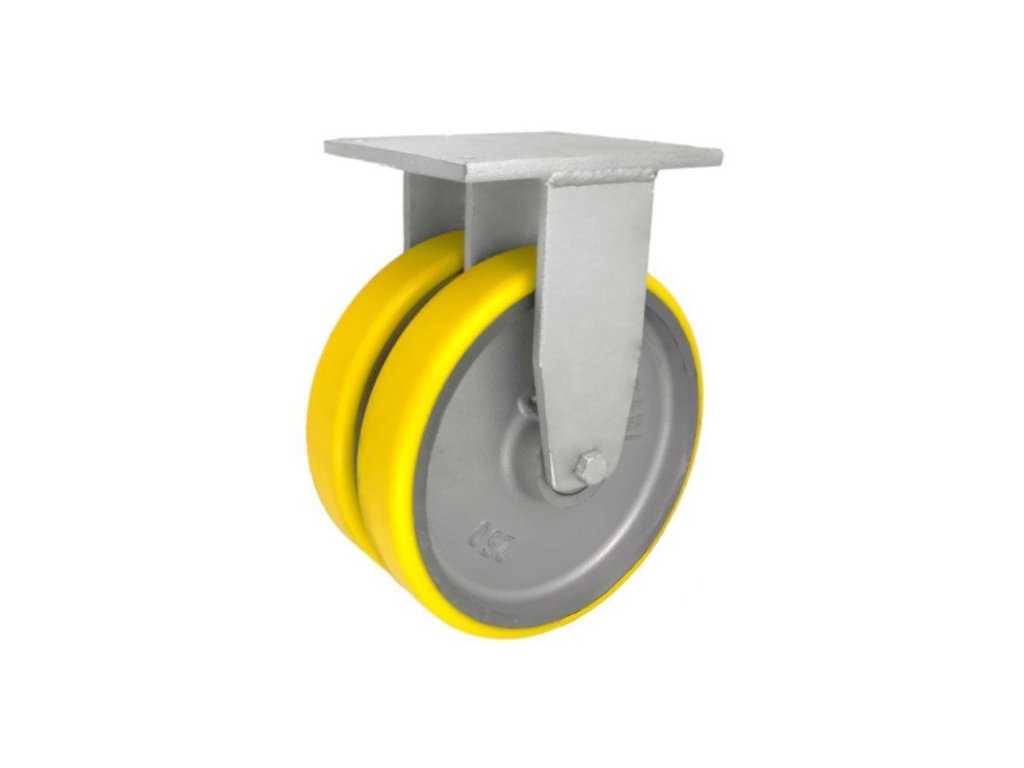 - polyuretánové koleso s liatinovým diskom zdvojené, pevná vidlica s upínacou doskou