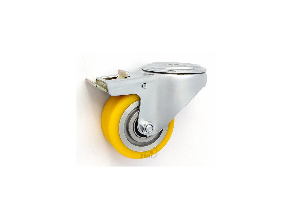 Polyuretánové koleso 80/37 mm, hliník, otočná vidlica s otvorom+brzda