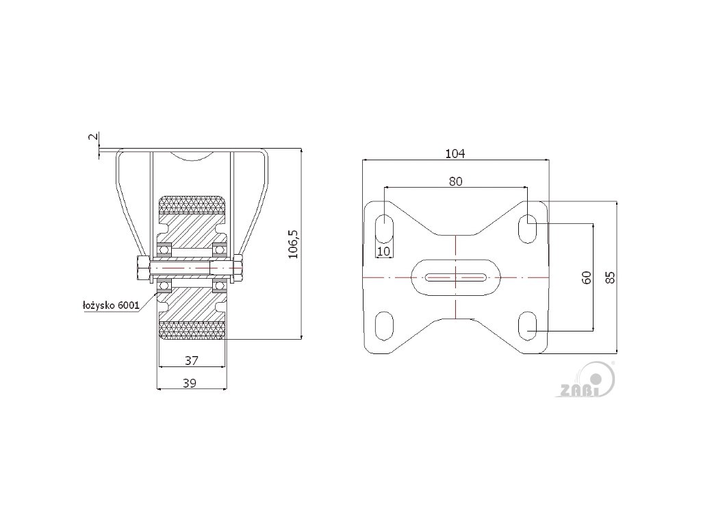 Polyuretánové koleso 80/37 mm, hliník, pevná vidlica s doskou