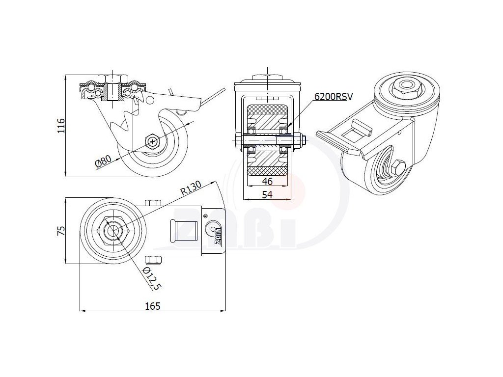 Polyuretánové koleso 80/46 mm, hliník, otočná vidlica s otvorom+brzda