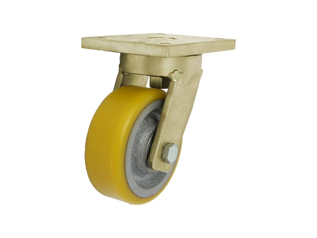 - polyuretánové koleso s liatinovým diskom, otočná vidlica s upínacou doskou