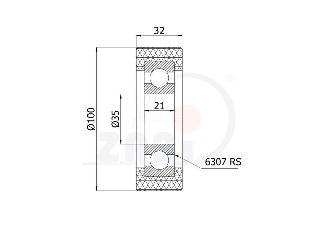 Polyuretánový valček 100/35x32 mm s guľôčkovým ložiskom