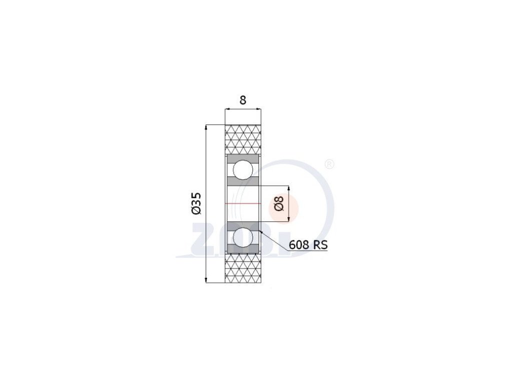 Polyuretánový valček 35/8x8 mm s guľôčkovým ložiskom