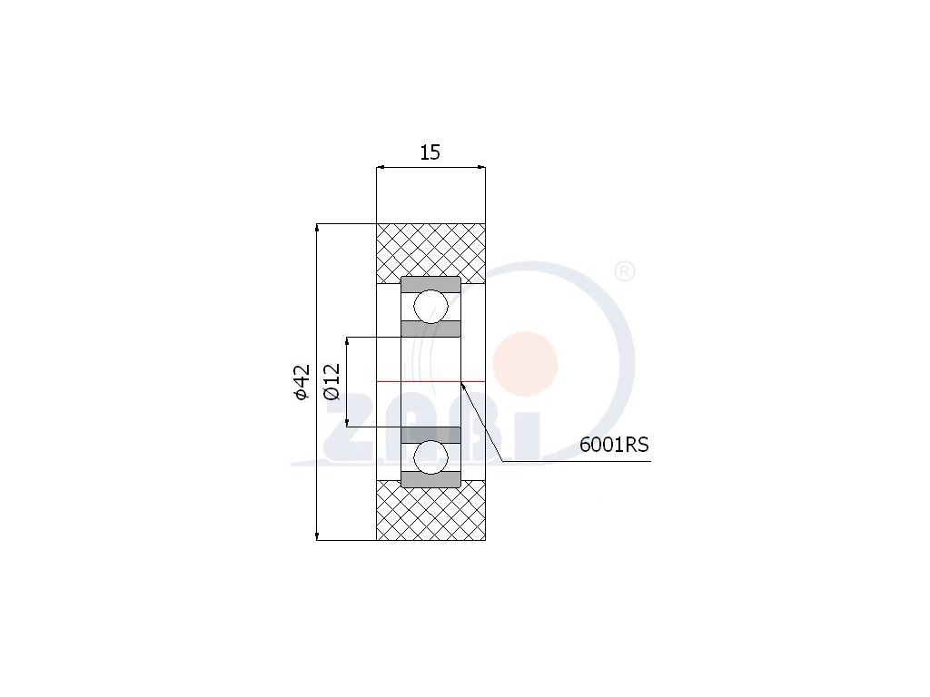 Polyuretánový valček 42/12x15 mm s guľôčkovým ložiskom