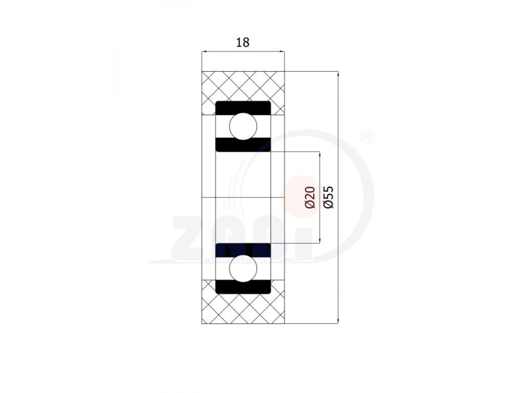 Polyuretánový valček 55/20x18 mm s guľôčkovým ložiskom