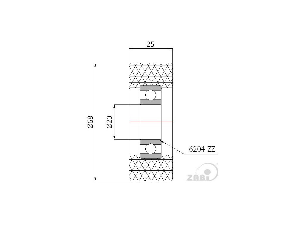 Polyuretánový valček 68/20x25 mm s guľôčkovým ložiskom