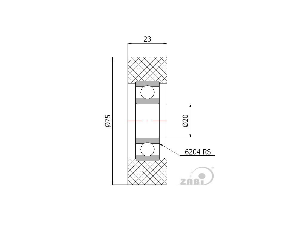 Polyuretánový valček 75/20x23 mm s guľôčkovým ložiskom