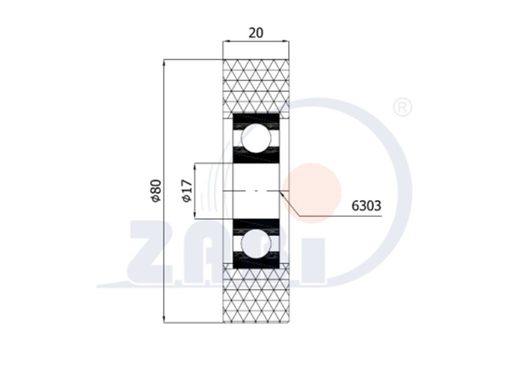 Polyuretánový valček 80/17x20 mm s guľôčkovým ložiskom
