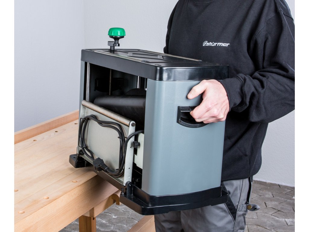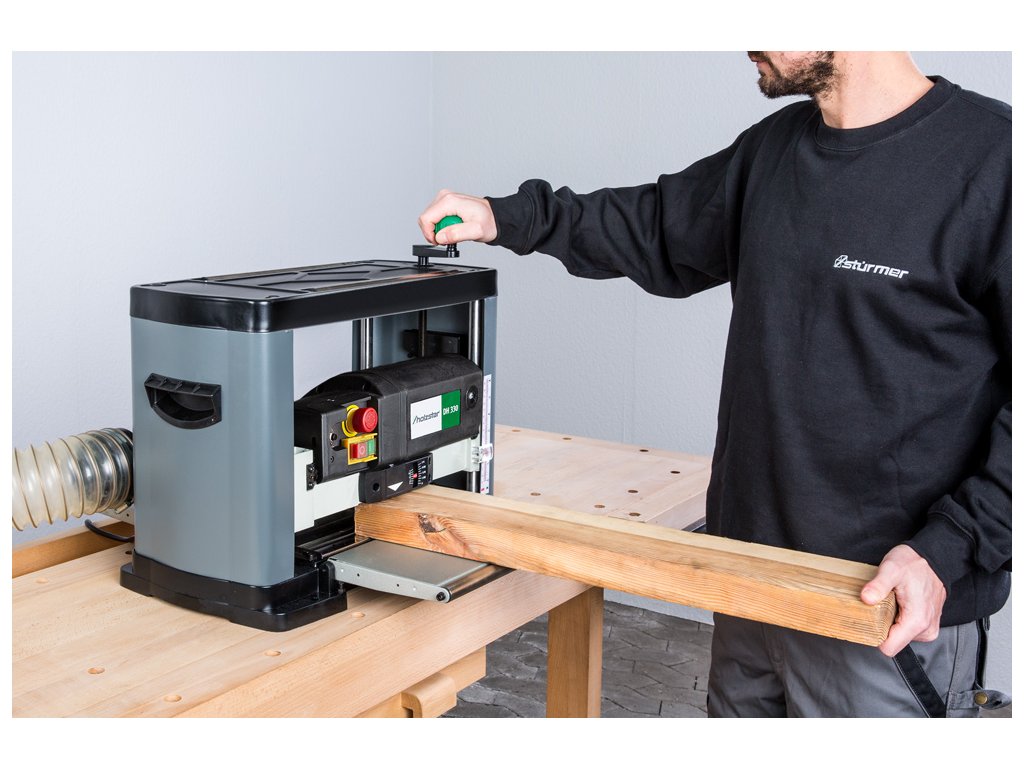 Výkonný motor s tepelnou ochranou a ochranou proti opätovnému spusteniu zabezpečuje plynulý a efektívny chod. Pogumovaný vstupný a výstupný valec poskytuje plynulý posuv obrobku s rýchlosťou 6 m/min, zatiaľ čo maximálny úber triesky dosahuje hodnotu 2,8 mm.