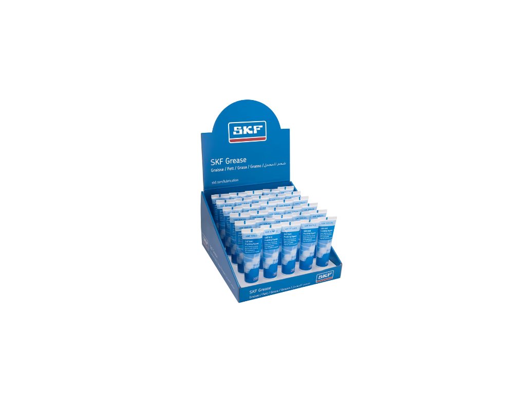 SKF LGAF 3E je mastná, hladká pasta, ktorá zabraňuje korózii spôsobenej veľmi miernymi osciláciami alebo vibráciami, ktoré môžu sťažiť demontáž.
