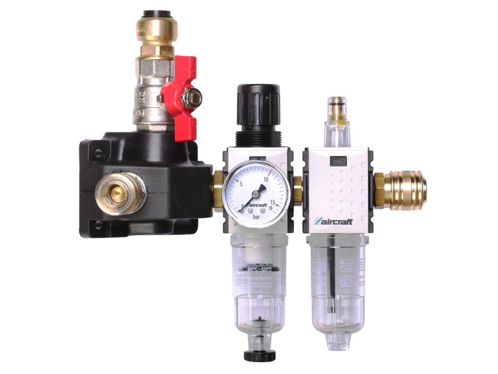 Rozdělovací krabice se 2 rychlospojkami, ventilem, regulátorem s filtrem a přimazávačem ø 22 mm
