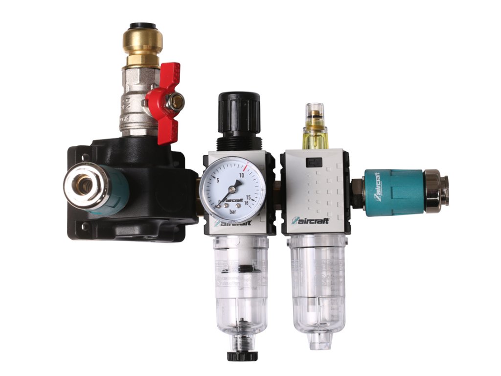 Rozdeľovacia krabica na rozvod stlačeného vzduchu. Jednoduchá montáž na stenu alebo strop.