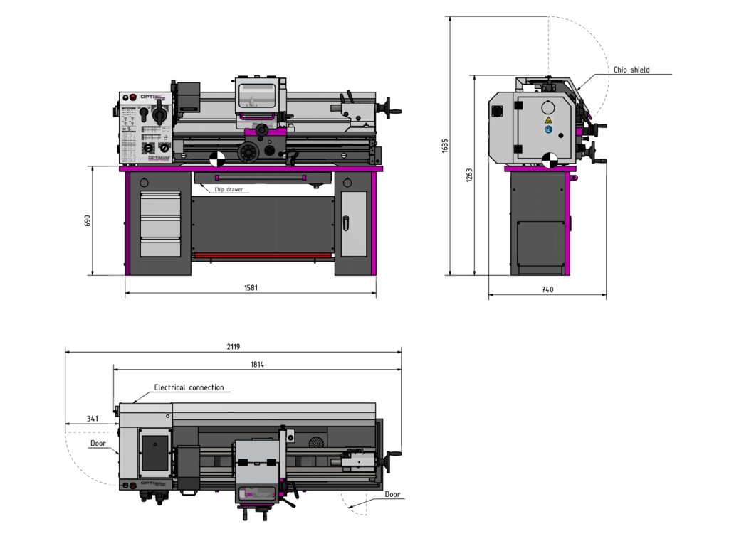Plne vybavený sústruh s vodiacou a ťažnou skrutkou as digitálnym odmeriavaním polohy DPA 31. Voliteľne s plynulou reguláciou otáčok pomocou frekvenčného meniča Lenze.