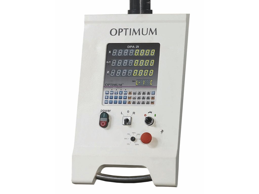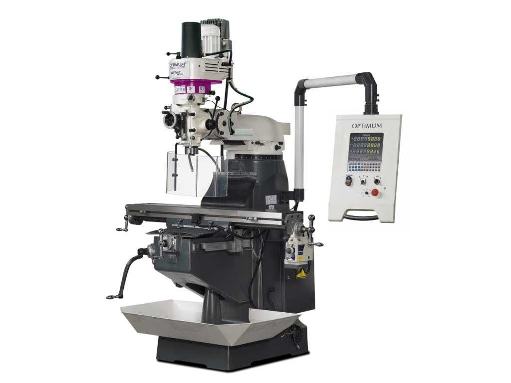 Univerzálna vŕtačko-frézka v masívnom prevedení na profesionálne použitie. Plynulá regulácia otáčok pomocou frekvenčného meniča (Made in Germany) a digitálne odmeriavanie polohy DPA 21.