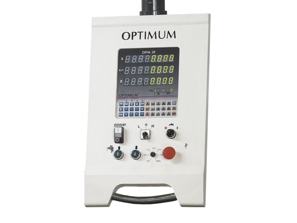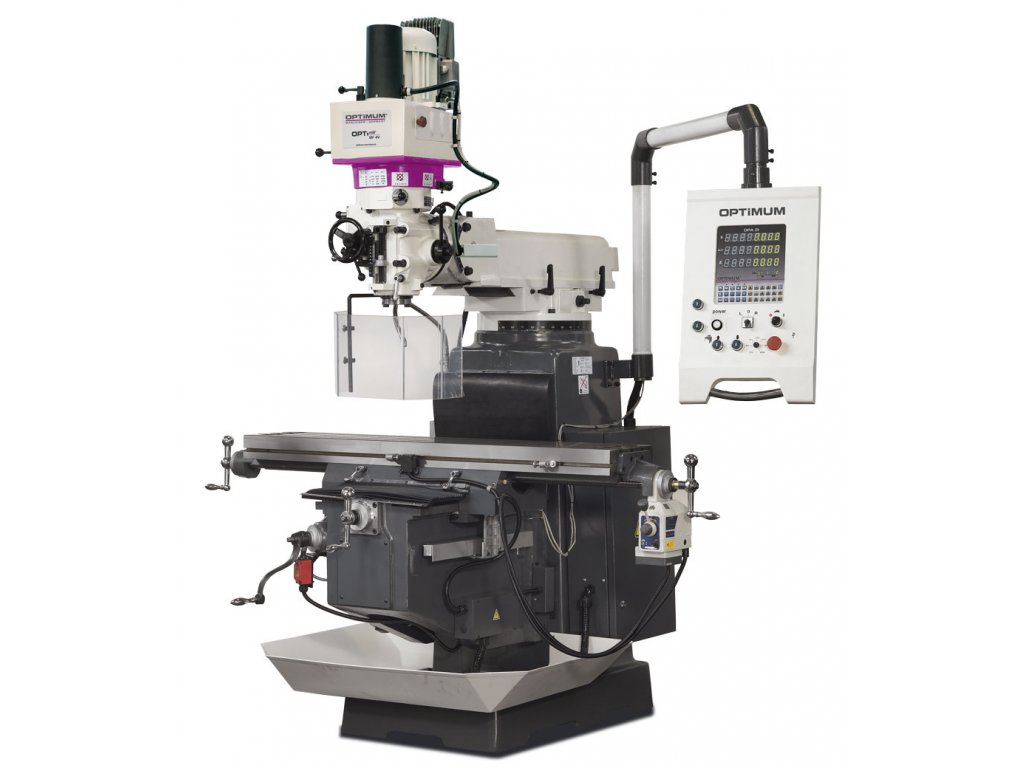 Univerzálna vŕtačko-frézka v masívnom prevedení na profesionálne použitie. Plynulá regulácia otáčok pomocou frekvenčného meniča (Made in Germany) a digitálne odmeriavanie polohy DPA 21.