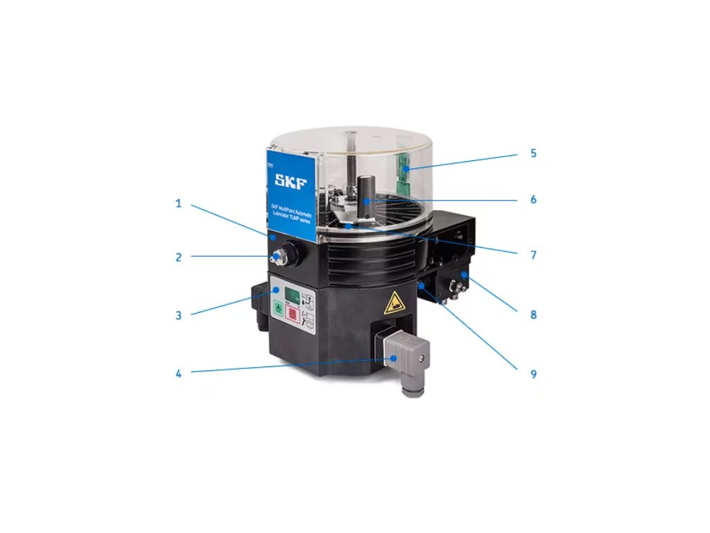 Tento všestranný mazací stroj s kapacitou zásobníka takmer jeden liter má miešaciu lopatku, ktorá zabraňuje oddeľovaniu mastnoty, vďaka čomu je vhodný pre viac mazív. Vďaka vysokému krytiu IP je odolný rad TLMP odolný voči vibráciám, odoláva umývaniu zariadenia a zabraňuje vniknutiu kontaminácie. Jednotka tiež umožňuje riadeniu stroja dočasne deaktivovať mazanie odpojením napájania.